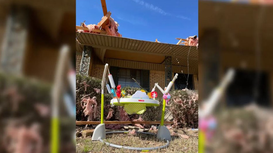 The children's toys were thrown to the front yard after a tornado hits the family's home in Winona, MS. (Austin Westfall/FOX/FOX Weather)