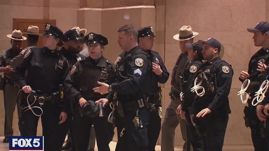 "Due to protest activity, expect traffic delays, road closures, mass transit disruptions and a heavy presence of emergency personnel in the area of 42nd Street and Broadway in Manhattan," the city's alert system said in a notification sent at 6:01 p.m. "Consider alternate routes and allow for additional travel time."