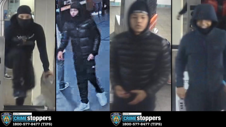 The NYPD has released images of several suspects connected to the stabbing of a 17-year-old migrant in Times Square. (Credit: NYPD)
