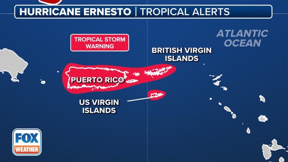 Tropical storm alerts associated with Hurricane Ernesto have been issued. (FOX Weather)