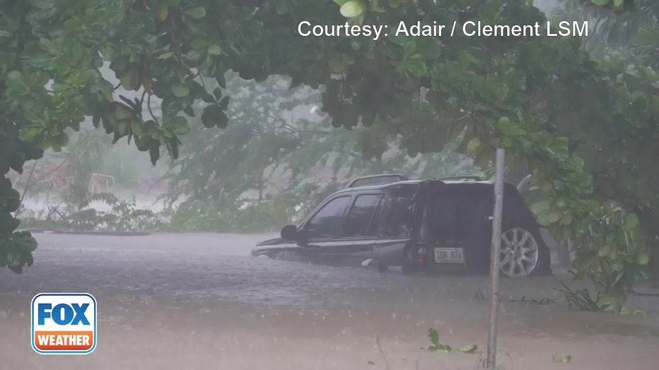 Video from the ground showed an SUV surrounded by water up to the top of its wheel wells.