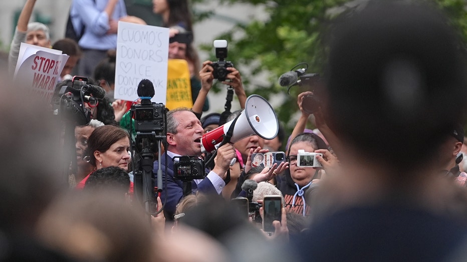 NEW YORK, UNITED STATES - JUNE 17: New York City mayoral candidate and city comptroller Brad Lander who was arrested outside a federal immigration courtroom by Immigration and Customs Enforcement (ICE) officers on June 17, 2025, talks to his pro-immi