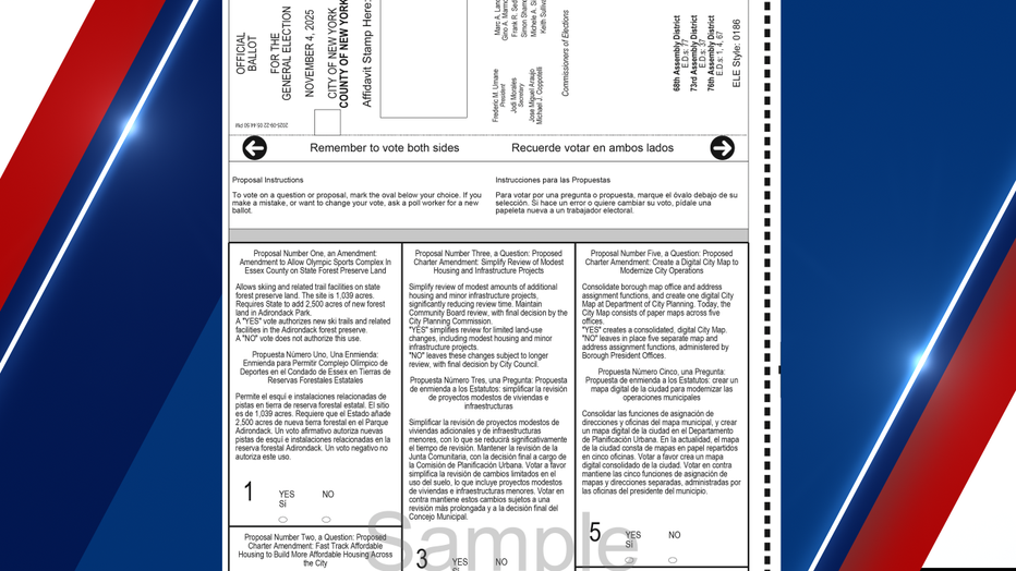NEW YORK - When New Yorkers head to the polls for the 2025 election, they'll be voting for more than just NYC's next mayor. Voters need to make sure to flip over their ballots to find six ballot proposals that cover a range of topics, from land use and affordable housing to when the city schedules its elections.