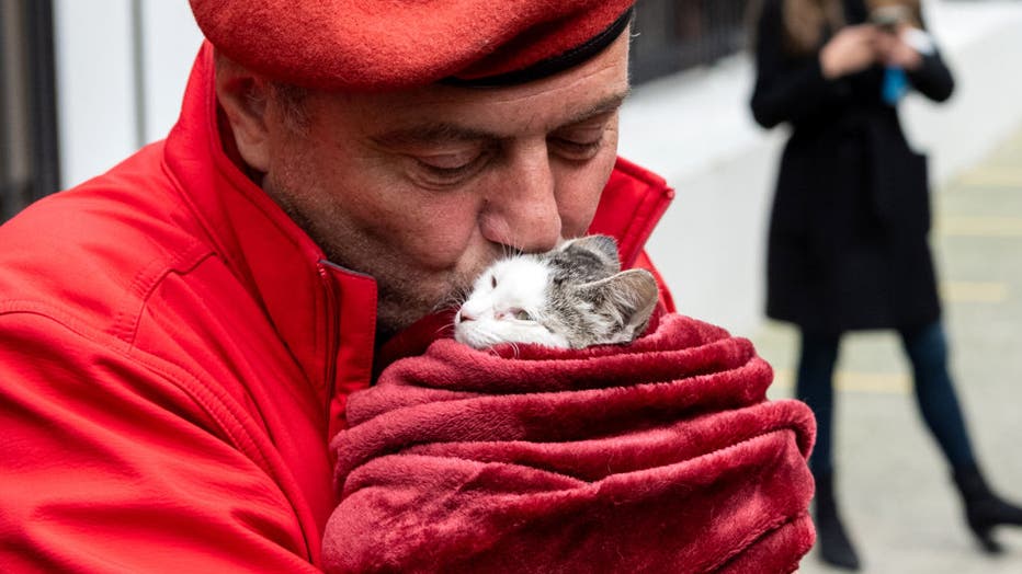 NEW YORK, NEW YORK - NOVEMBER 02: Republican mayoral candidate, Curtis Sliwa, kisses his cat Gizmo, after voting on the Upper West Side on November 2, 2021 in New York City. Sliwa was told by Board of Election officials he could not vote with his pet