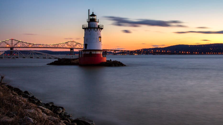 [UNVERIFIED CONTENT] Tappan Zee Bridge, Sleepy Hollow lighthouse, New York, Hudson River.