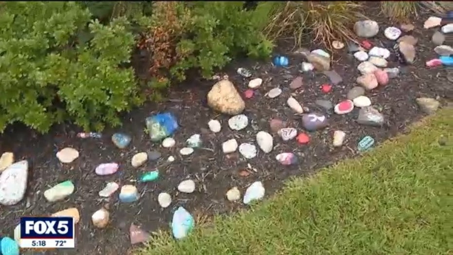 Second-graders read the book "Fireboat," which tells the story of a retired fireboat that was brought back into service to help fight the fires after the 9/11 attacks. The young students also color American flags, and paint rocks that are then placed in a garden around the school.
