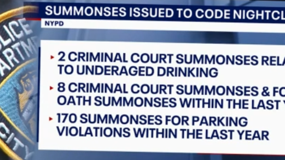 According to the New York Police Department, officers issued eight criminal court summonses and four OATH summonses at the club within the last year.