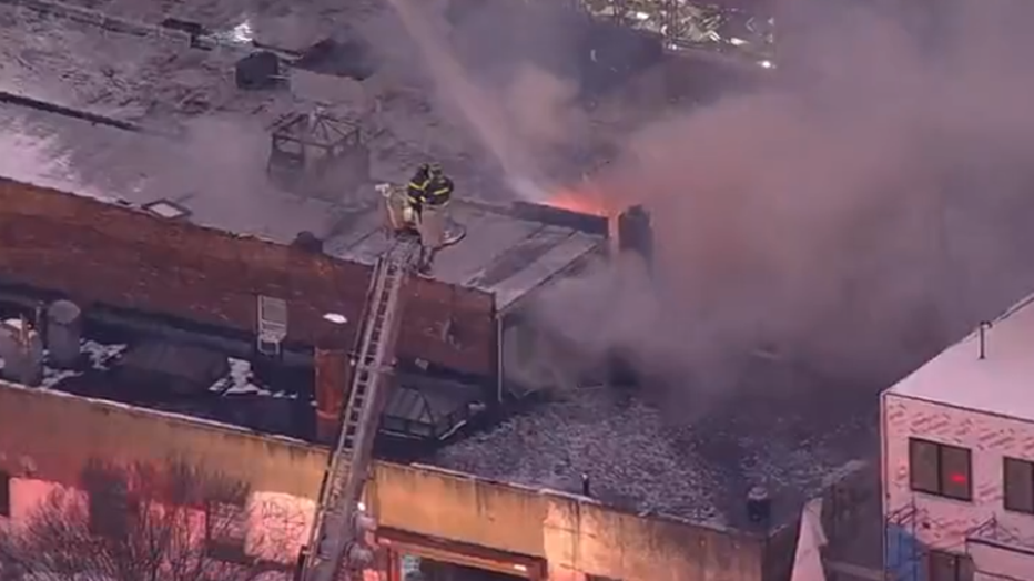 BROOKLYN - Firefighters are working to contain a fire that tore through a Brooklyn bakery early this morning.