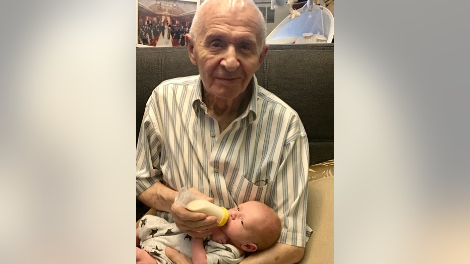 Alexander Feingold holds his first grandchild Dylan at his home in New York, New York, on July 24, 2018. (Mark Feingold via AP)