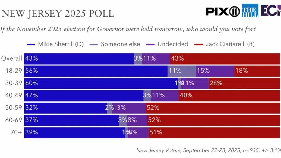 NEW YORK - President Donald Trump’s pick for New Jersey governor, Republican Jack Ciattarelli, has pulled into a dead heat with Democrat Mikie Sherrill just weeks before the election, according to a new Emerson College Polling/PIX11/The Hill survey.