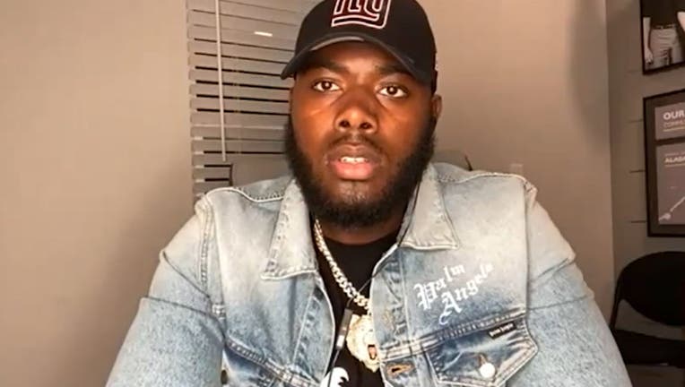 In this still image from video provided by the New York Giants, Andrew Thomas speaks via teleconference after being selected during the first round of the 2020 NFL Draft on April 23, 2020. (Photo by Getty Images/Getty Images)
