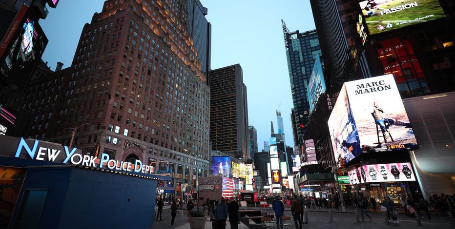 NEW YORK, USA - MARCH 14: People wear face masks at the Times Square in New York, United States on March 14, 2020. (Photo by Tayfun Coskun/Anadolu Agency via Getty Images)