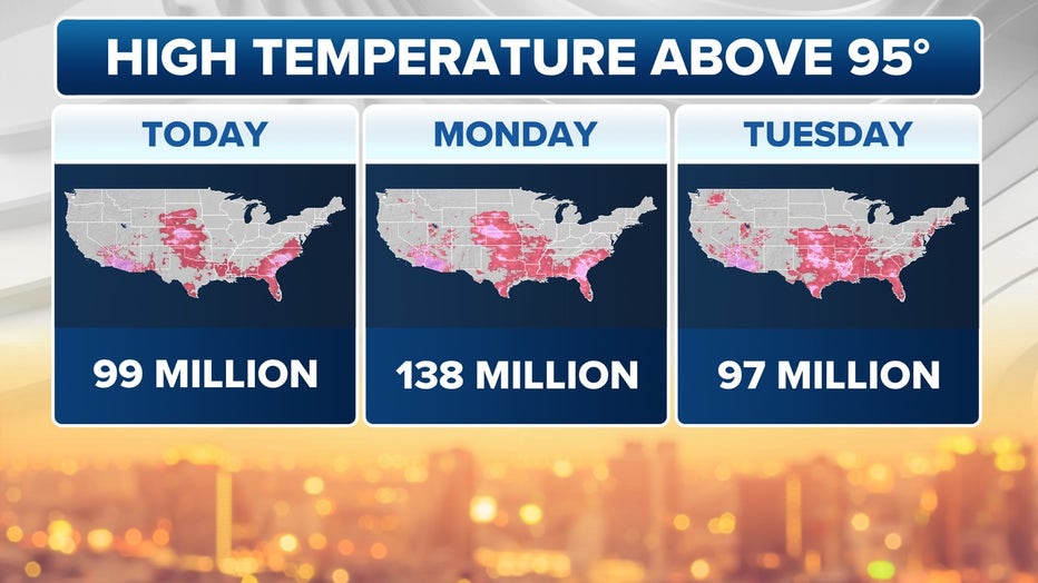 This graphic shows the population expected to be above 95 degrees through Tuesday, July 29, 2025. (FOX Weather)