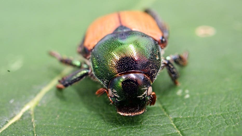 01 August 2025, Baden-Württemberg, Karlsruhe: A prepared Japanese beetle (Popillia japonica) is on display at the Agricultural Technology Center Augustenberg (LTZ). Photo: Uli Deck/dpa (Photo by Uli Deck/picture alliance via Getty Images)