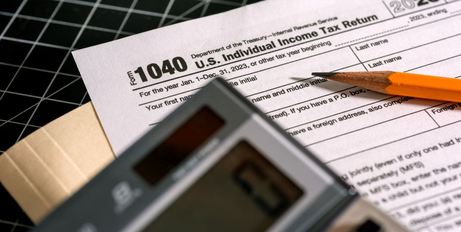 FILE-In this photo illustration, a 1040 Individual Income Tax Return document is seen on a desk on April 15, 2024 in North Haledon, New Jersey. (Photo illustration by Michael Bocchieri/Getty Images)