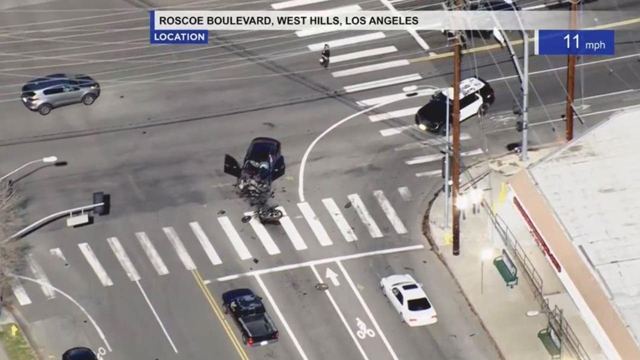 The crash happened around 1:15 p.m. near the intersection of Roscoe Blvd. and Fallbrook Ave. in West Hills.