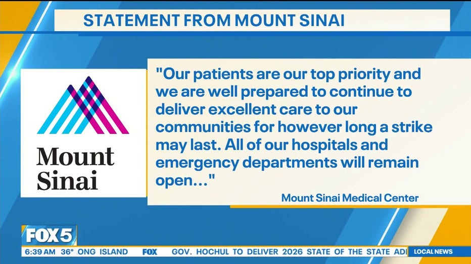 In statements, all three hospital systems emphasized that patient care remains their top priority. Mount Sinai said it is prepared to deliver care for however long the strike lasts. Montefiore said appointments remain scheduled unless patients hear otherwise, while NewYork-Presbyterian said it has taken steps to ensure uninterrupted care.