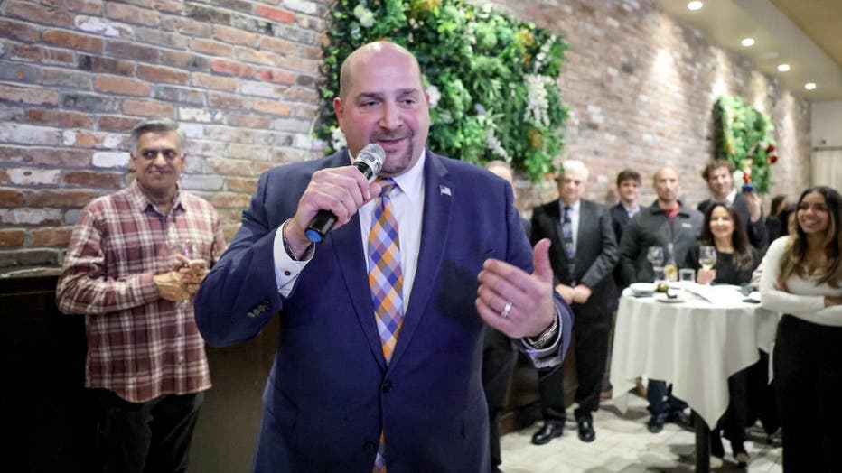 Westbury, N.Y.: Nassau County Legislator Seth Koslow speaks during his Campaign Kickoff event in Westbury, New York on January 8, 2025. Koslow, a Democrat, is launching his campaign to run against Bruce Blakeman for the Nassau County Executive seat.