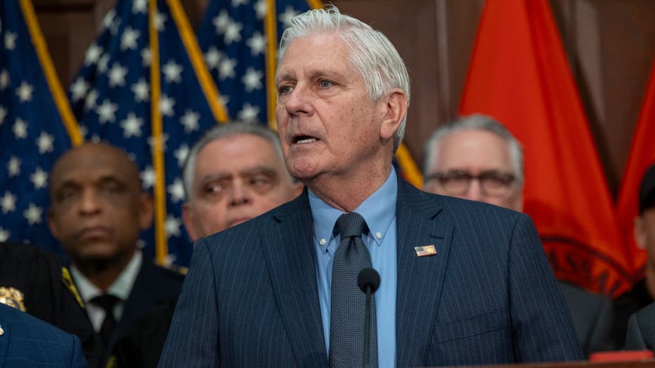 Mineola, N.Y.: Nassau County Executive Bruce Blakeman announces new ICE enforcement measures at the Theodore Roosevelt Executive building on February 4, 2025 in Mineola, New York. (Photo by Howard Schnapp/Newsday RM via Getty Images)