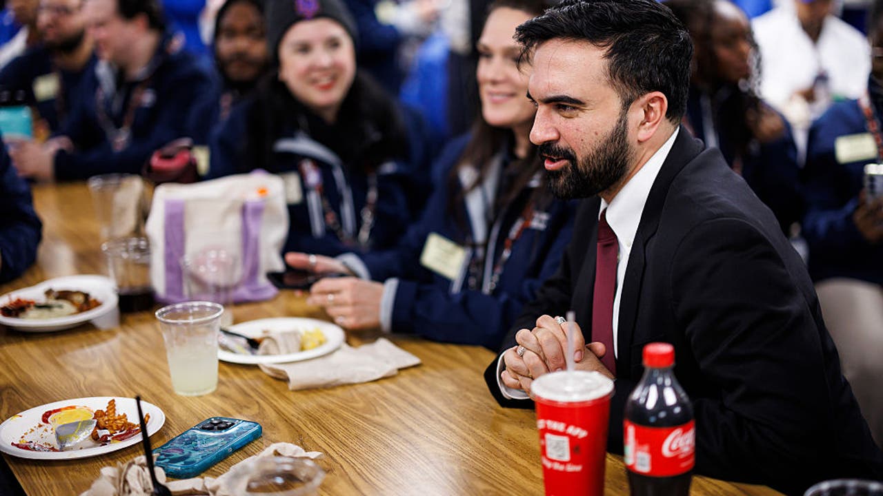 NEW YORK, NEW YORK - APRIL 09: New York City Mayor Zohran Mamdani visits employees at Citi Field prior to the game between the Arizona Diamondbacks and the New York Mets on April 09, 2026 in New York City. (Photo by Caean Couto/Getty Images)