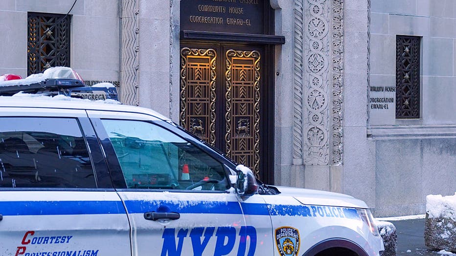 NEW YORK, NEW YORK - DECEMBER 14: An NYPD vehicle is seen outside of the Congregation Temple Emanu-El, a Jewish synagogue, on December 14, 2025 in New York City. New York's Jewish community is reacting to the Bondi Beach terror attack that reportedly