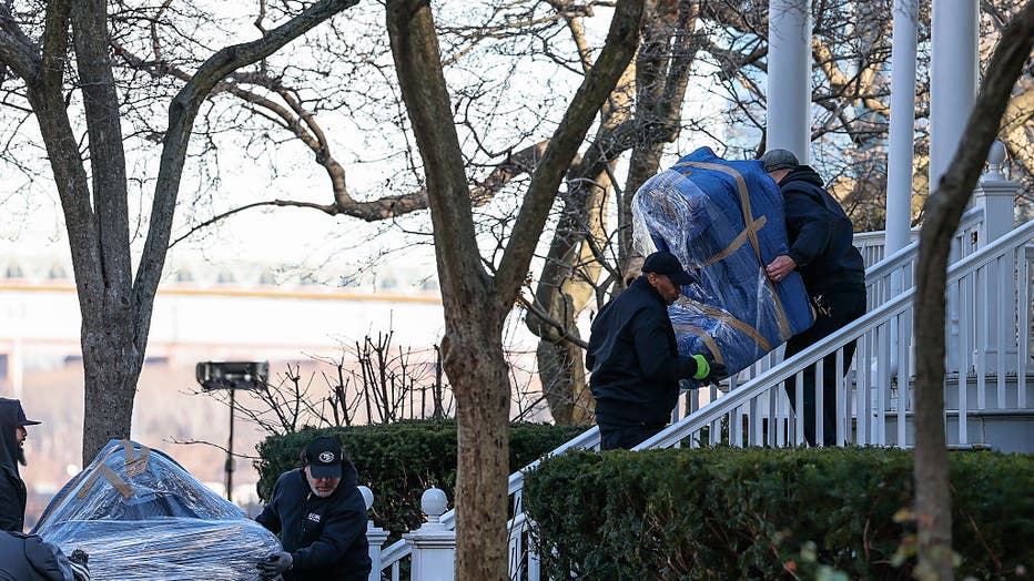 NEW YORK, NEW YORK - JANUARY 12: Moving company workers bring furniture into Gracie Mansion on January 12, 2026 in New York City. Mayor Zohran Mamdani and his wife, Rama Duwaji, have begun to move from their one-bedroom Queens apartment to Gracie Man