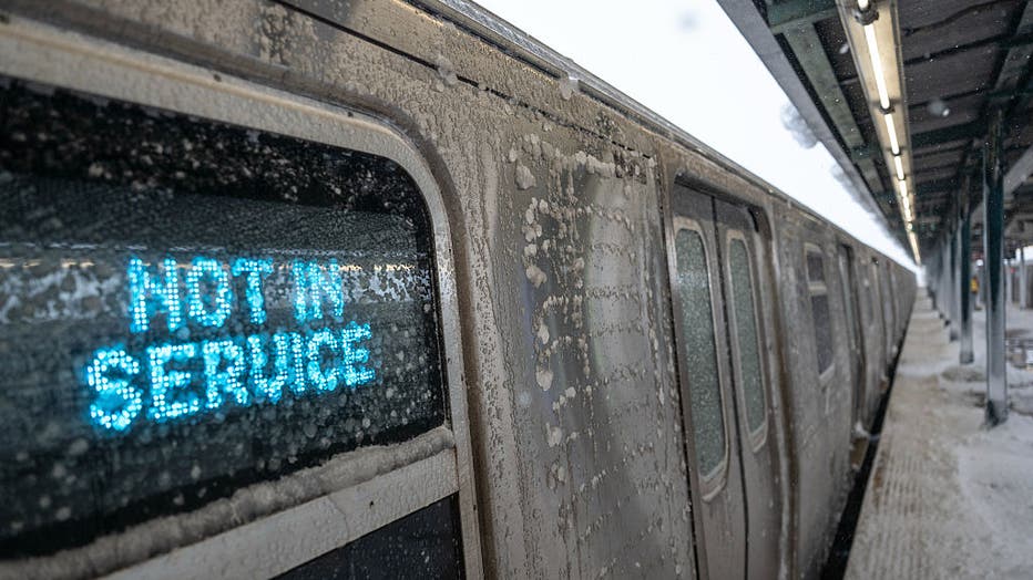 "Not In Service" signage on a train at a subway station platform in the Queens borough of New York, U.S. (Photographer: Victor J. Blue/Bloomberg via Getty Images)