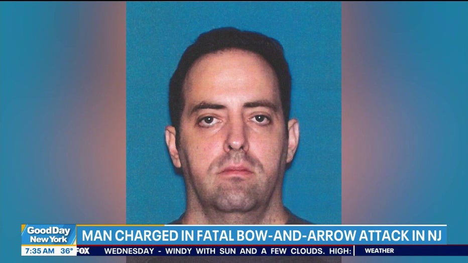 Kearny, NJ - A New Jersey man is charged with murder after authorities say he killed a pedestrian with a bow and arrow, then barricaded himself inside his home and set fires while hiding from police in Kearny.