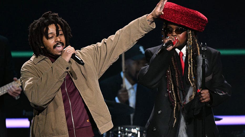 US rapper and singer Lauryn Hill (R) performs on stage during the draw for the 2026 FIFA Football World Cup taking place in the US, Canada and Mexico, at the Kennedy Center, in Washington, DC, on December 5, 2025. (Photo by Jim WATSON / AFP via Getty