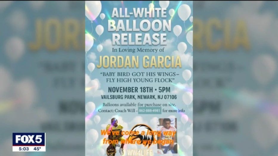 NEWARK, NJ - Family, friends, and community members gathered Tuesday night at Vailsburg Park to honor 10-year-old Jordan Garcia, who was killed in a shooting on Newark’s south side over the weekend.