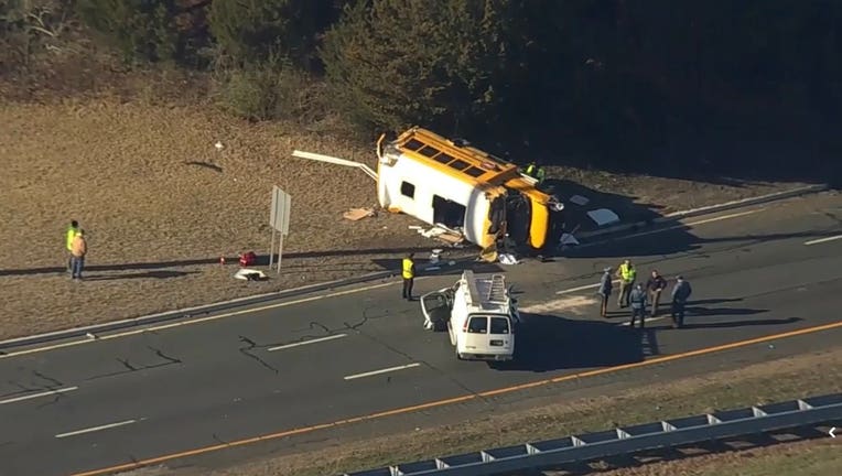NEW JERSEY - A crash involving a school bus and a passenger van in Wall Township, New Jersey, has shut down multiple eastbound lanes on I-95 and Route 34.