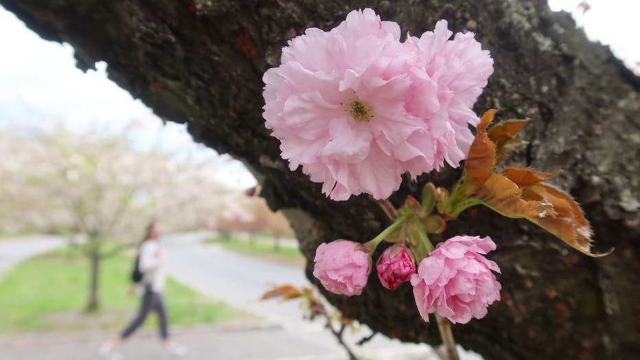 NEWARK, NJ - APRIL 19: Cherry blossoms are seen at four stages of openness on a tree at Branch Brook Park on April 19, 2021 in Newark, New Jersey. (Photo by Gary Hershorn/Getty Images)
