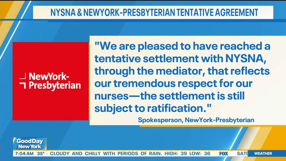 "We are pleased to have reached a tentative settlement with NYSNA through the mediator that reflects our tremendous respect for our nurses," a New York-Presbyterian spokesperson said in a statement, noting the agreement is subject to ratification by union members.
