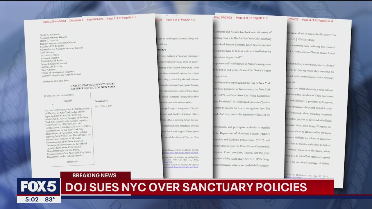 The U.S. Department of Justice has filed a lawsuit against New York City, its mayor and several other officials to challenge the city's sanctuary city laws. FOX 5 NY's Morgan McKay has the details.