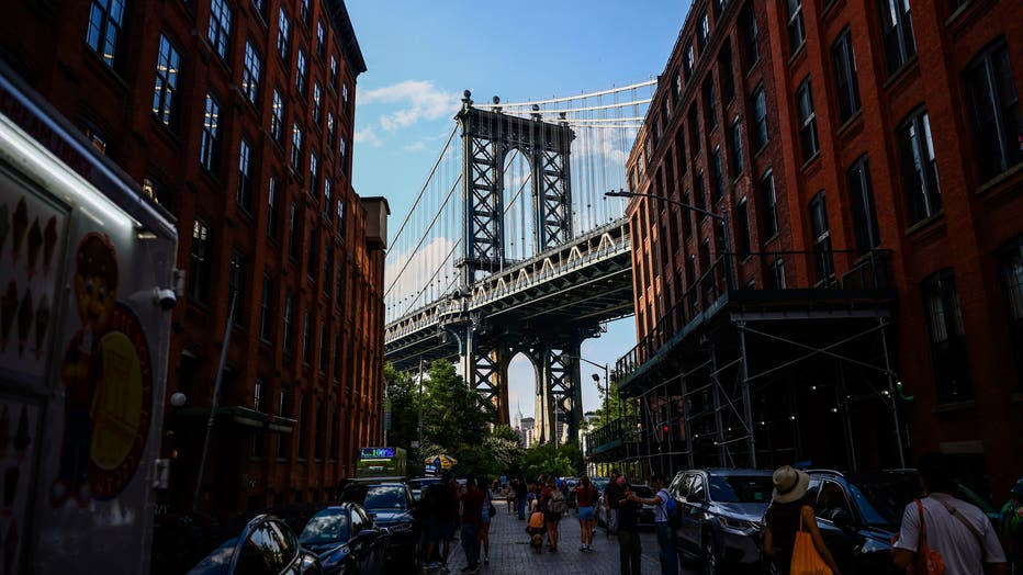 Manhattan Bridge seen from Dumbo area in Brooklyn in New York City, United States of America on July 7th, 2024. (Photo by Beata Zawrzel/NurPhoto via Getty Images)