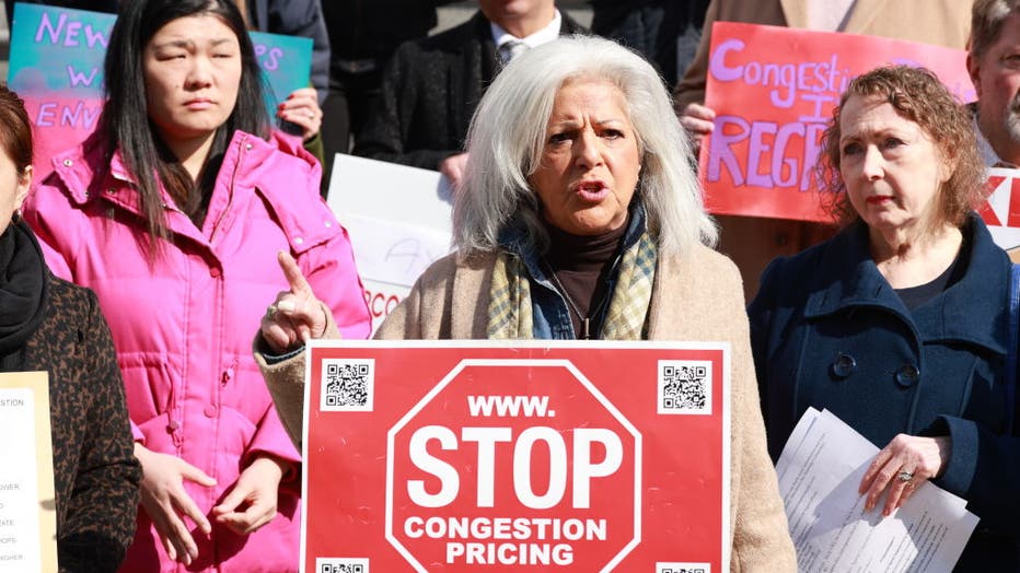 UNITED STATES -February 27: City Council member Vickie Paladino is pictured while delivering remarks on the steps of City Hall during rally of the Stop Congestion Price coalition, Tuesday, February 27, 2024. (Photo by Luiz C. Ribeiro for NY Daily New