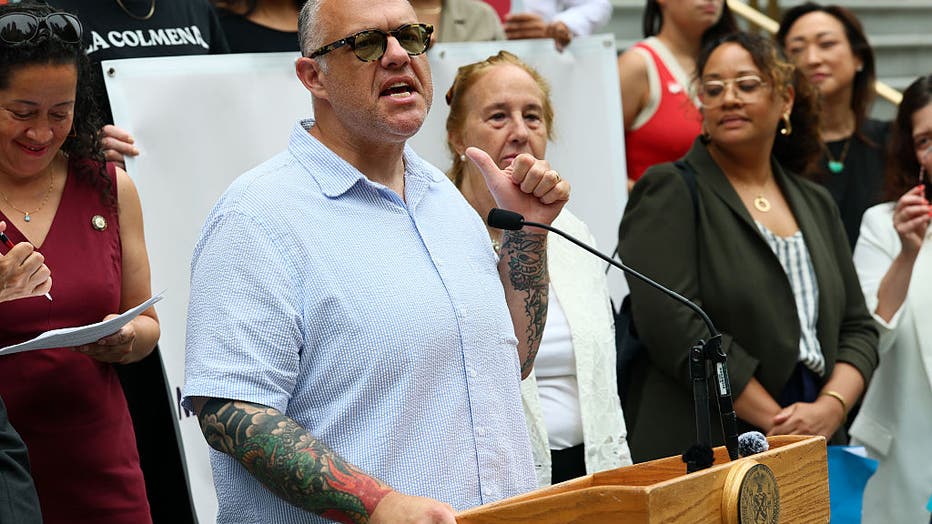 NEW YORK, NEW YORK - JUNE 26: Council Member Justin Brannan speaks during a press conference at City Hall on June 26, 2025 in New York City. (Photo by Michael M. Santiago/Getty Images)