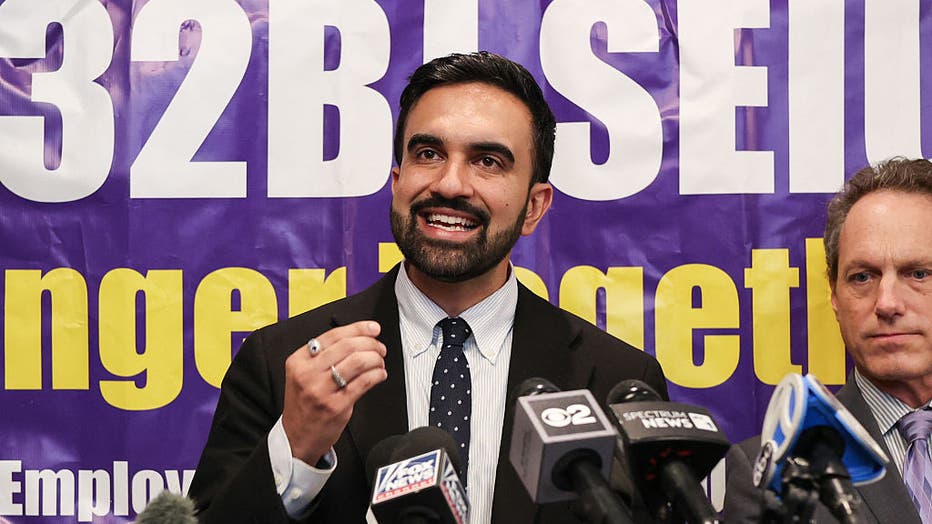 Zohran Mamdani, Democratic nominee for New York City Mayor, speaks during a news conference at the headquarters of SEIU Local 32BJ in New York City on July 30, 2025, to honor the victims of the shooting in Midtown Manhattan that killed four people on