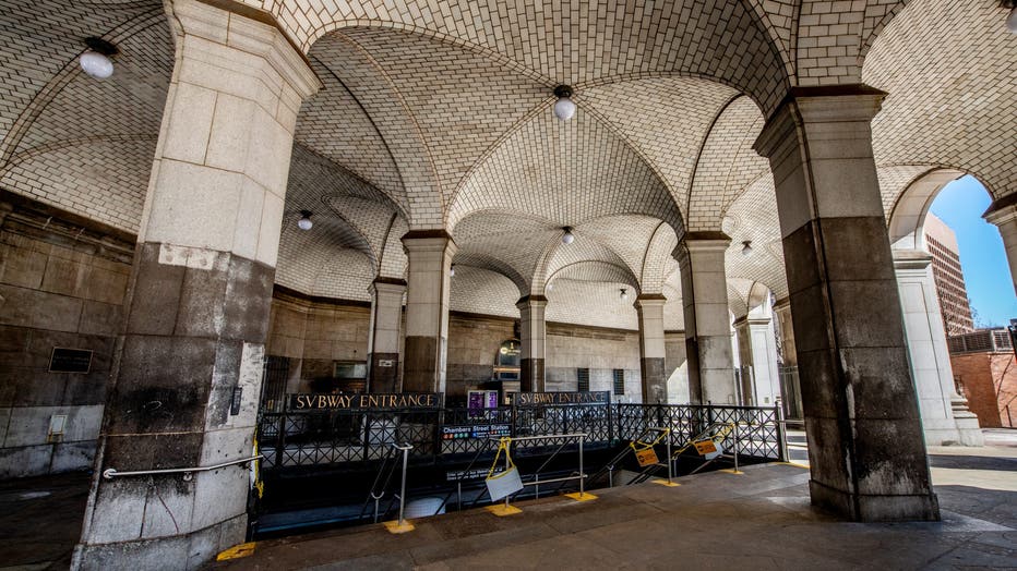 NEW YORK, NEW YORK - MARCH 05: A view of the entrance to the City Hall subway station in Downtown Manhattan on March 05, 2021 in New York City. (Photo by Roy Rochlin/Getty Images)
