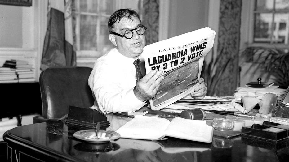 UNITED STATES - SEPTEMBER 26: Mayor Fiorello LaGuardia reading the Daily News election results in 1941. (Photo by NY Daily News Archive via Getty Images)