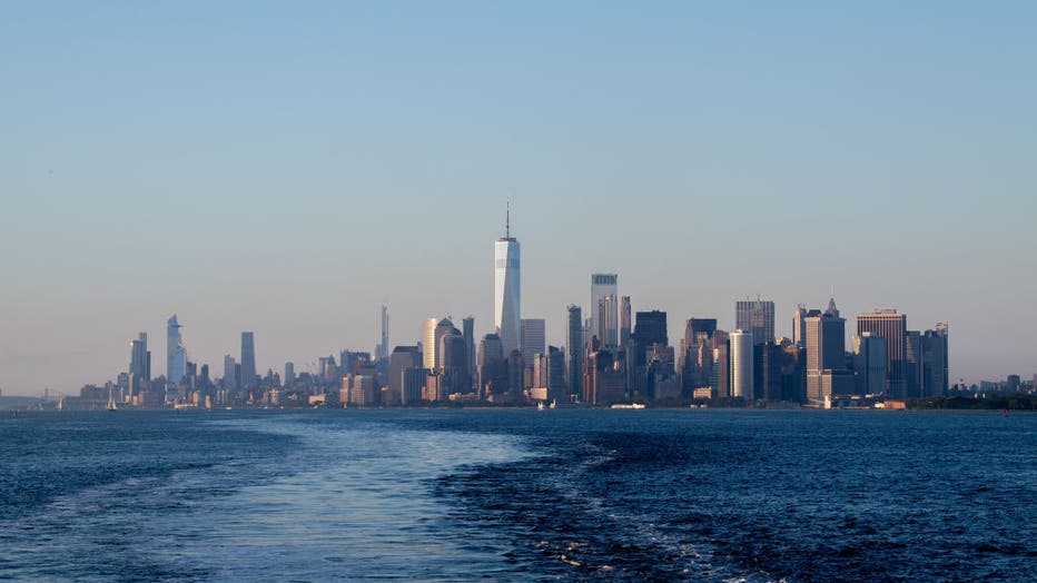 NEW YORK, NEW YORK - JULY 31: A view of Downtown Manhattan as seen from the Staten Island Ferry during the fourth phase of the coronavirus reopening on July 20, 2020 in New York, New York. on July 31, 2020 in New York, New York. The fourth phase allo