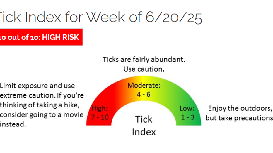 The Fordham Tick Index, which measures the likelihood of encountering ticks outdoors, is currently at its peak level of 10 on a 10-point scale.