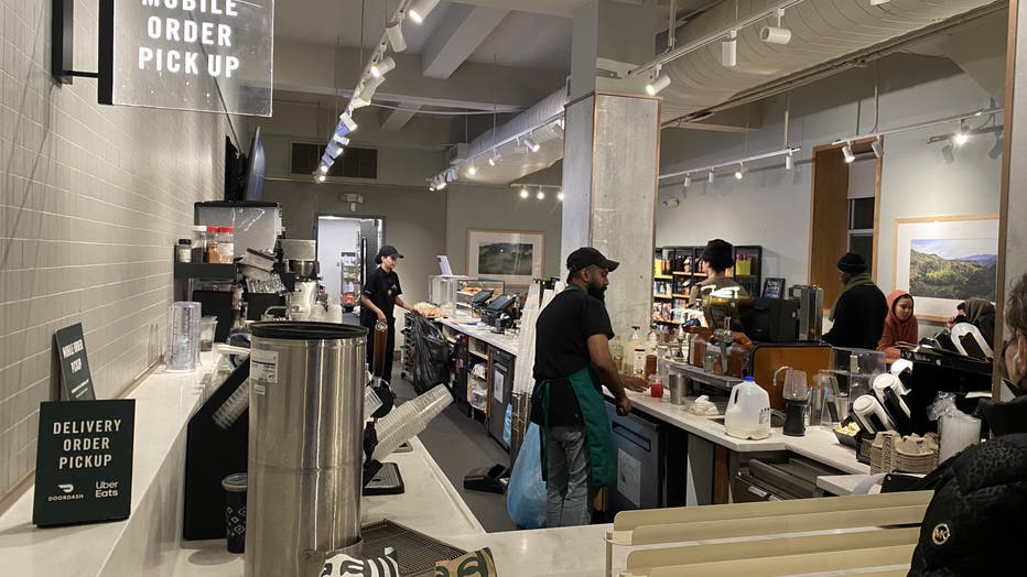 Mobile order and Uber Eats and Doordash delivery pick up area at Starbucks coffee shop, Queens, New York. (Photo by: Lindsey Nicholson/UCG/Universal Images Group via Getty Images)