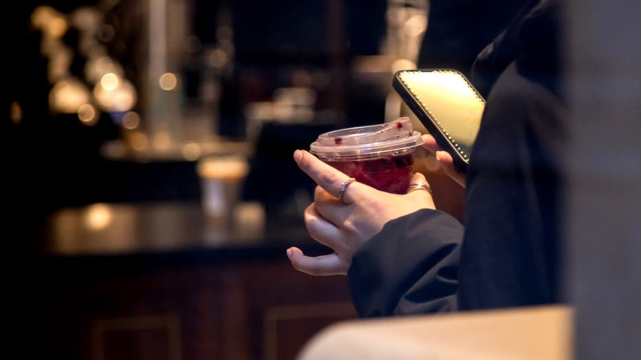 A customer holds a drink inside a Starbucks coffee shop in New York, US, on Monday, Feb. 24, 2025. Starbucks Corp. is removing some less popular drinks from its US lineup, part of a broader plan to simplify the menu and serve customers faster. Photog