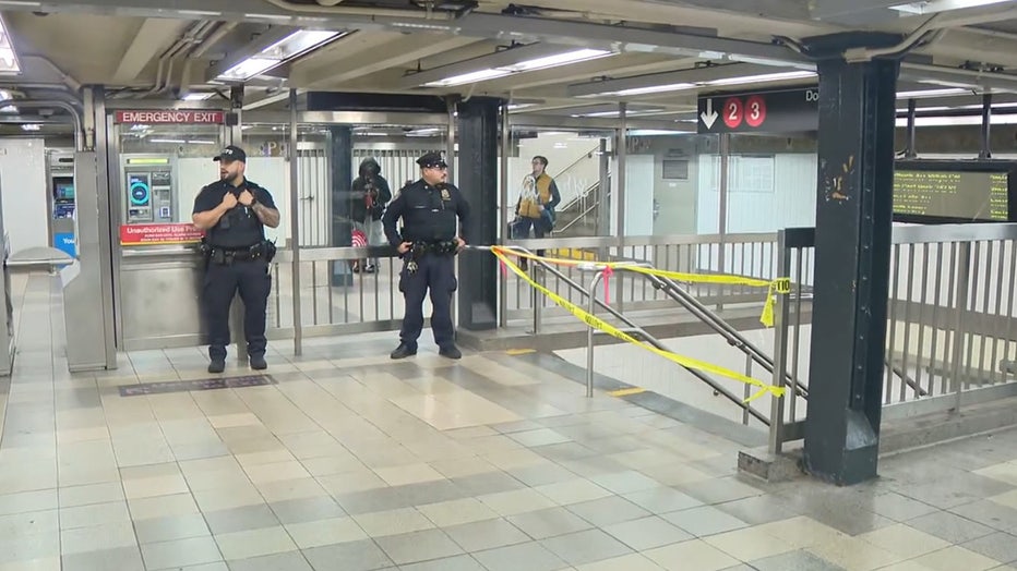 According to the NYPD, officers responded to a 911 call about an infant wrapped in a blanket and lying alone on a stairway leading to the downtown 1, 2, and 3 train platforms.