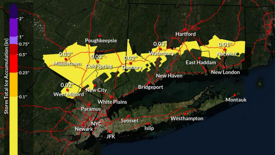 A glaze of ice, up to a few hundredths of an inch, is expected.