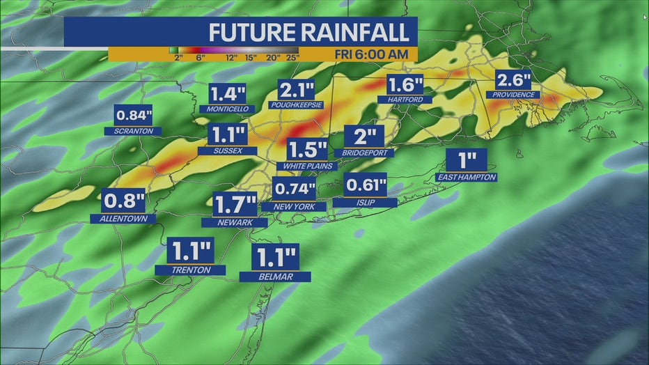 Specifically during Thursday's morning commute, where scattered showers, storms, heavy downpours and even some localized flooding are all possible. FOX 5 NY's Mike Woods says: "Your rain chances go up big time tonight into tomorrow."