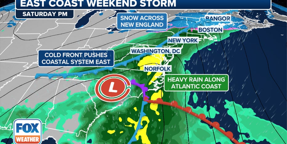 "This one is going to be big," FOX Weather Meteorologist Bob Van Dillen said. "It's going to roll up the Eastern Seaboard over the weekend. It could be a washout for you on Saturday."