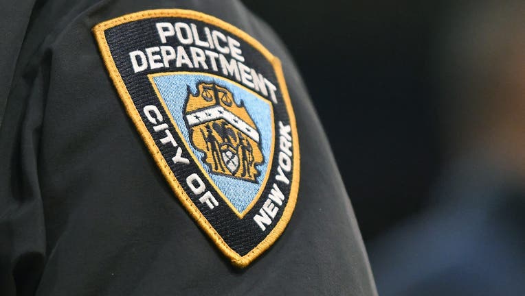 NEW YORK, NEW YORK - MARCH 11: NYPD logo on the sleeve of a New York City policeman during the semifinals of the Big East Basketball Tournament between the ""n"" and the Connecticut Huskies at Madison Square Garden on March 11, 2022 in New York City.