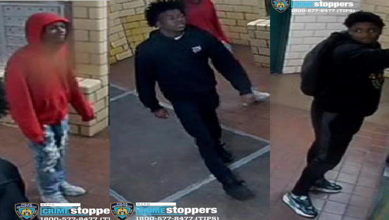 NEW YORK - The NYPD is looking for three suspects they say made anti-gay statements and threw cans of food at a 17-year-old girl, causing her to tear a ligament in her knee at a playground in the Bronx earlier this month.